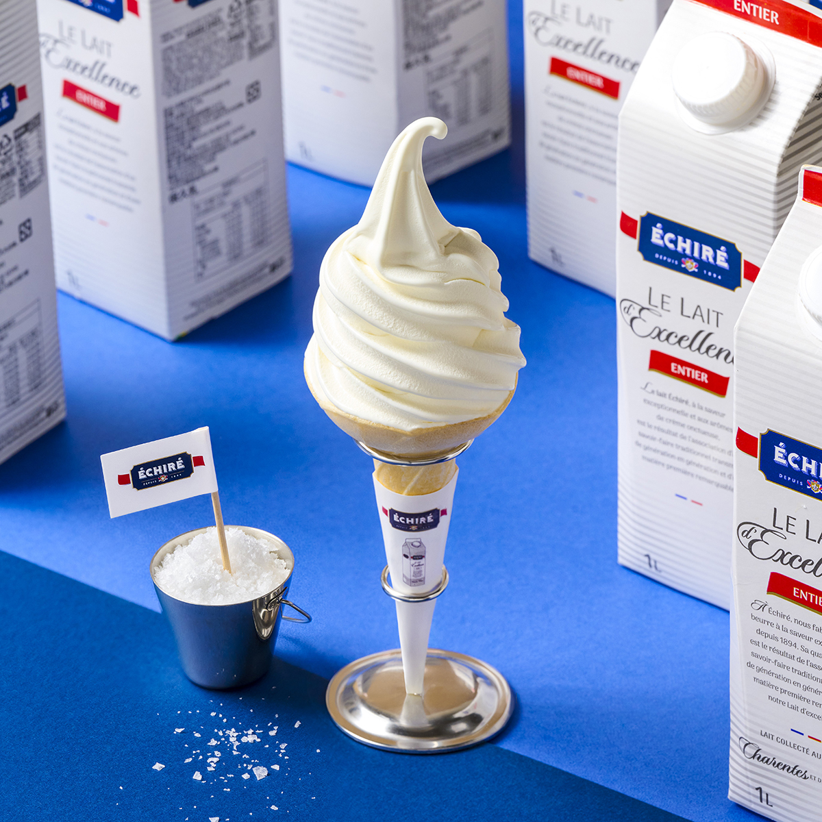 艾許 Échiré 被譽為「奶油界的愛馬仕」,長年深受全球米其林餐廳與頂尖甜點師的青睞。此次,艾許特別選擇與台灣在地冰品領導品牌蜷尾家合作,將其高品質的全脂牛乳轉化為大眾化的日常甜點,讓消費者能以更輕鬆的方式,品味法式經典風味。